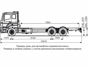 Шасси 6*4, длина рамы 5 970 мм, межосевое растояние мм, грузоподъемность 12 тонн